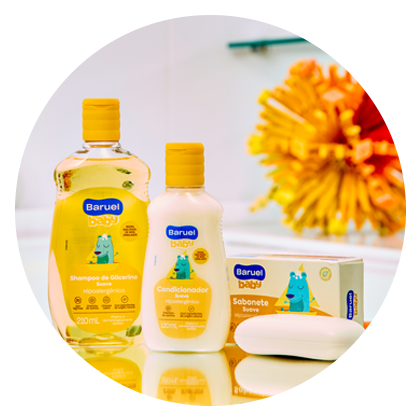 Após lavar os cabelinhos do seu bebê com o Shampoo Infantil de Glicerina Suave Baruel Baby, aplique o condicionador nos fios, massageando suavemente.
