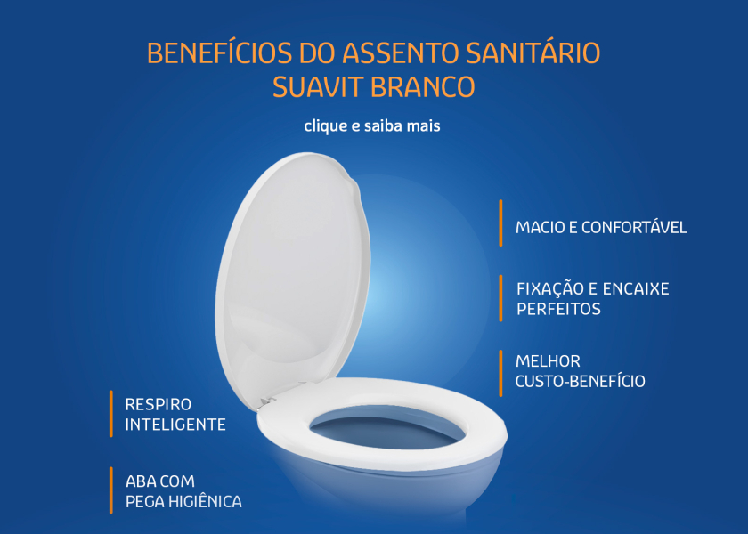 Além disso, o Assento Sanitário Suavit possui design anatômico, tampa com acabamento liso e brilhante, e é várias opções de cores, escolha a que combina com o seu ambiente!