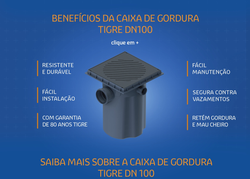 Desenvolvida pela líder de mercado e com mais de 80 anos de história, a Tigre oferece a linha de Caixas de Esgoto, indispensável para uma instalação tranquila para sua obra. Os produtos Tigre são produzidos com PVC e trazem alta performance, fácil instalação e durabilidade.