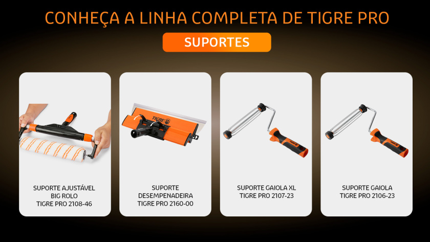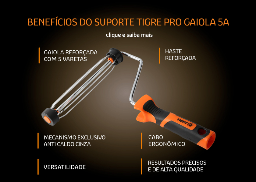 A estrutura da gaiola com 5 varetas oferece uma firmeza excepcional proporcionando maior controle durante a aplicação da tinta.