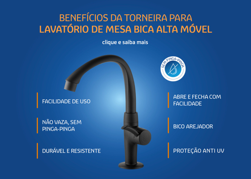 Feita em plástico de engenharia (ABS) e fabricada em conformidade com a norma NBR 10281 (mesma norma de torneiras de metal).