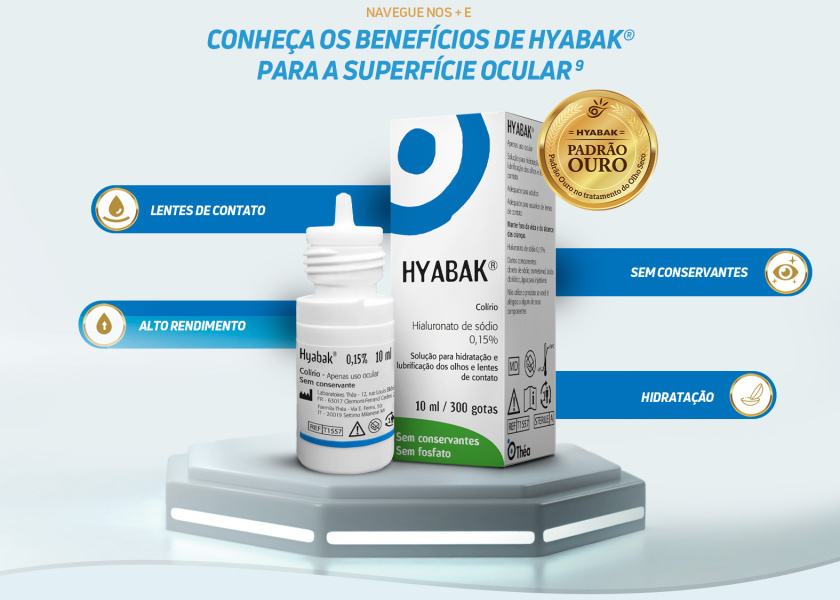 Hyabak® é um colírio lubrificante sem conservantes que contém hialuronato de sódio na composição. Hyabak® é a primeira lágrima artificial sem conservantes em frasco multidose lançada no Brasil que OFERECE ALÍVIO IMEDIATO DO DESCONFORTO OCULAR.2-7